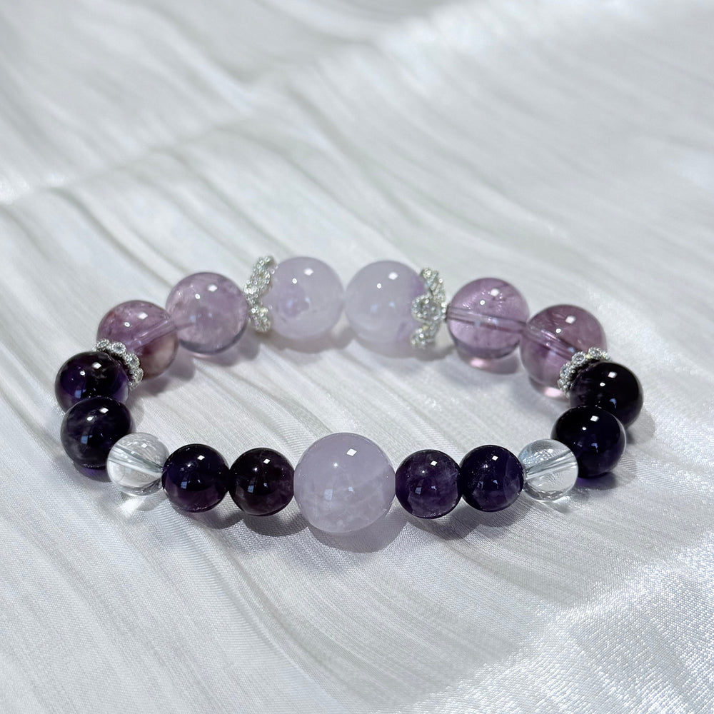 Bring serenity and balance into your life with this Amethyst & Lavender Quartz Healing Bracelet, a soothing blend of soft lilac and deep violet gemstones that radiate tranquility and emotional harmony. This elegant bracelet features natural Amethyst, Lavender Quartz, and Clear Quartz beads—each carefully selected to promote peace, clarity, and positive energy.
