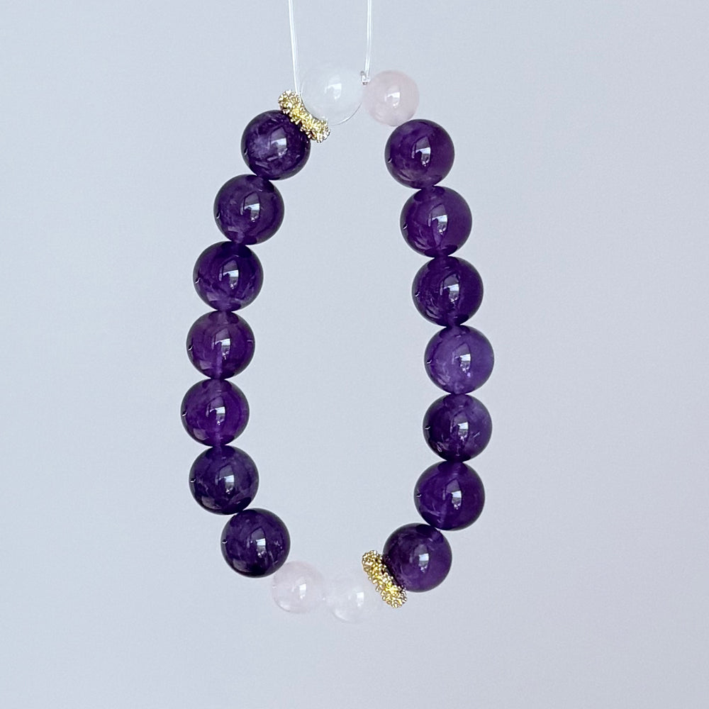 Elevate your energy and style with this Amethyst & White Jade Healing Bracelet, a harmonious blend of deep purple Amethyst and pure white Jade beads accented with elegant gold spacers. Designed for balance, protection, and tranquility, this bracelet embodies both beauty and purpose — perfect for meditation, energy healing, or daily wear.