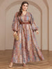 This belted dress combines feminine charm with functionality. It features stylish lantern sleeves and a flattering print design. The included belt cinches the waist for a flattering silhouette. Perfect for any occasion. this dress is a must-have in your wardrobe.
