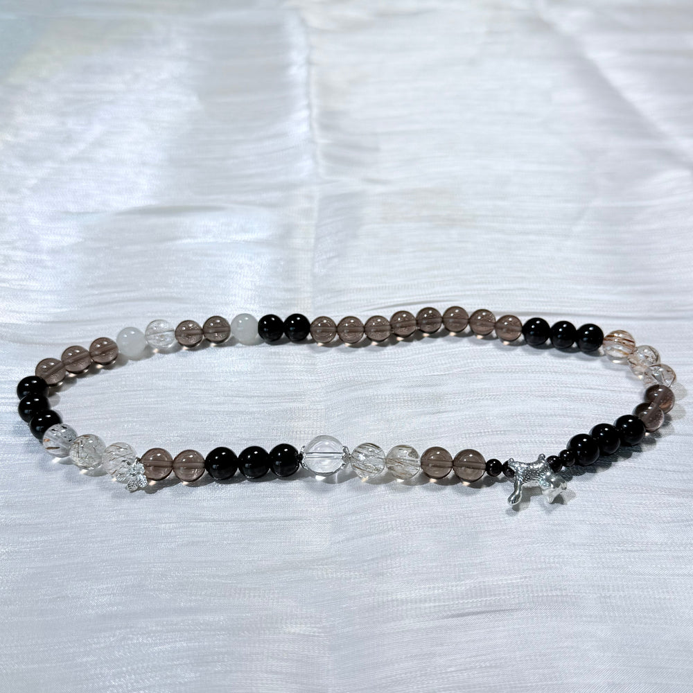 Gemstones: Black Obsidian, Smoky Quartz, Clear Quartz, White Agate