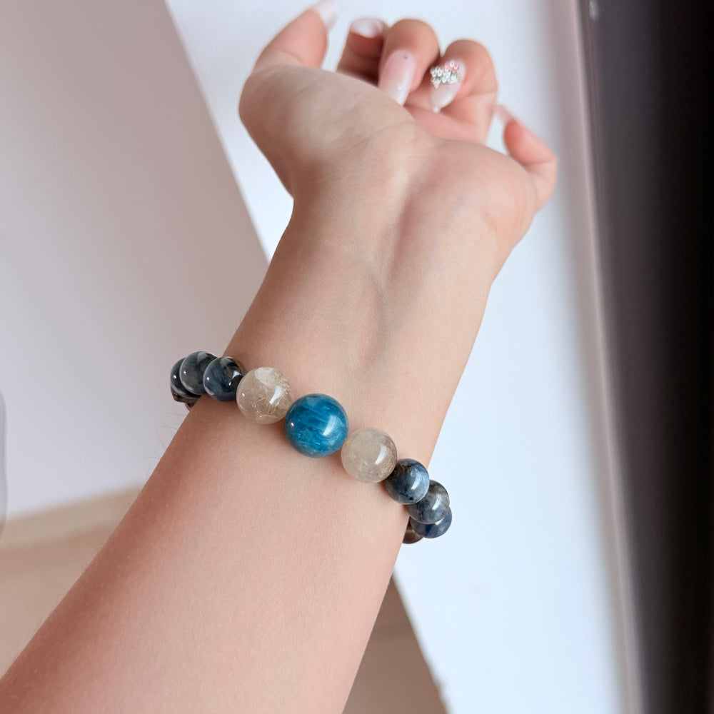 Bring balance, confidence, and serenity into your daily life with this Natural Crystal Healing Bracelet, handcrafted from a harmonious blend of premium gemstones — Blue Kyanite, Citrine, Apatite, Tiger’s Eye, and Moonstone.