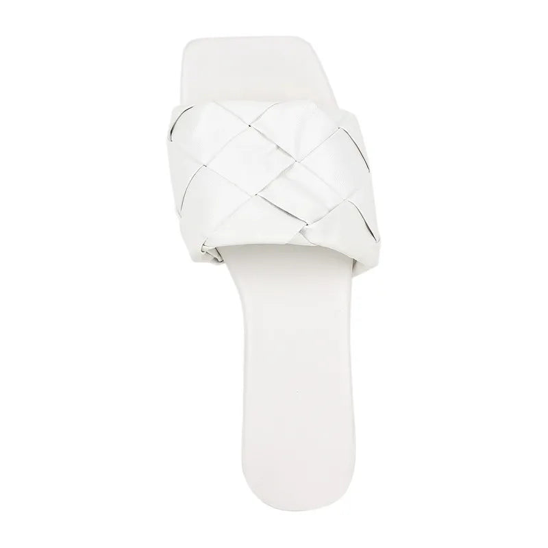 These Peep Toe Slip-On Flat Sandals offer a comfortable and stylish option for warm weather. With a peep toe design and easy slip-on style. these sandals are perfect for everyday wear. The flat sole provides support and the peep toe allows for breathability. Perfect for any outfit and occasion.