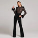 Dress to impress with our Fashionable Feathered Bandage Jumpsuit! Made with high-quality bandage material. this jumpsuit hugs your curves and accentuates your figure. The feathered detailing adds a touch of elegance and sophistication. making you stand out at any event. Be the envy of all in this statement piece.