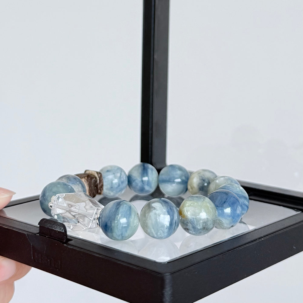 Elegant Handcrafted Design: The deep ocean-blue tones of Kyanite combined with the brilliance of Clear Quartz create a calm yet empowering aesthetic.