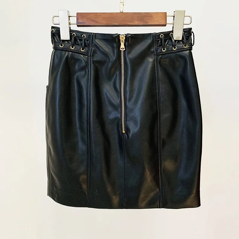This stunning lace-up PU leather skirt will make you feel confident and stylish. The slim fit accentuates your curves and the lace-up detailing adds a touch of edginess. Made from high-quality PU leather. this skirt is a must-have for any fashion-forward woman. Elevate your wardrobe with this versatile and chic piece!