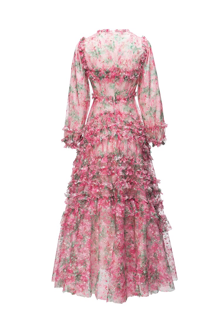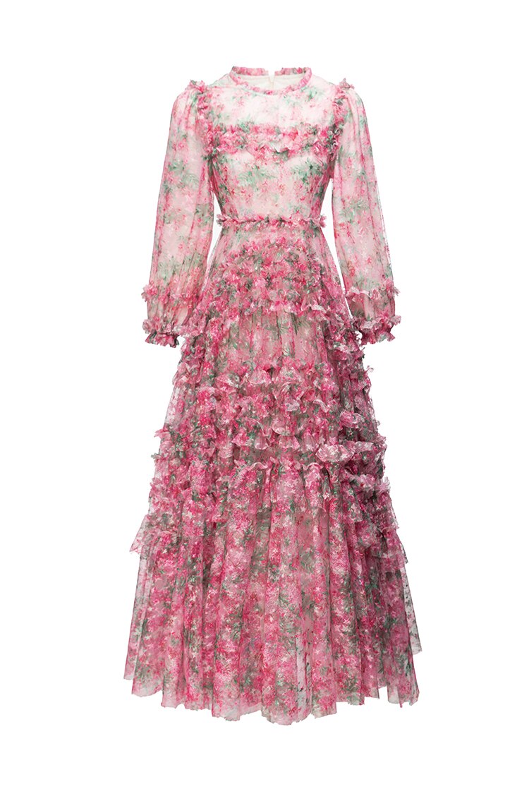The perfect example of casual-chic styling. Crafted from comfortable fabric. it features a beautiful ruffle detailing on the neckline and sleeves. while the mesh design offers a lightweight look. The dress is perfect for any evening or special occasion.