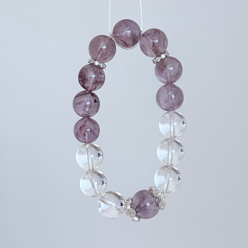 Our Lavender Rutilated Quartz & Clear Quartz Bracelet blends soothing lavender hues with the pure brilliance of clear quartz, creating a harmonious energy that nurtures peace and self-awareness. Each bead is carefully selected for its natural beauty and healing vibrations, enhanced with delicate silver spacers that add a touch of luxury