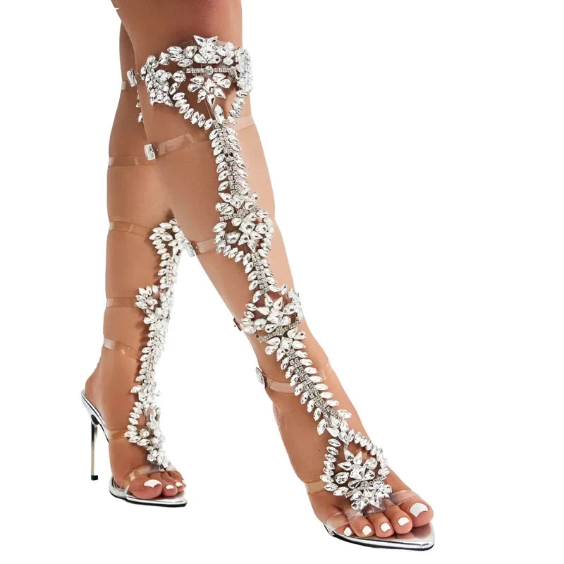 Add a touch of elegance to any outfit with our Rhinestones Crystal Open Women's Toe Sandal! Experience comfort and style as you walk with rhinestone accents and an open toe design that will leave you feeling confident and glamorous. Elevate your wardrobe and step into luxury today!