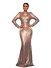 Be the star of the show in our Rosegold Sequin Mermaid Dress! With its shimmering sequins and elegant mermaid silhouette. you'll be sure to turn heads. Stand out from the crowd and make a statement in this eye-catching piece. Perfect for any special occasion. this dress is a must-have for any fashion-forward individual.