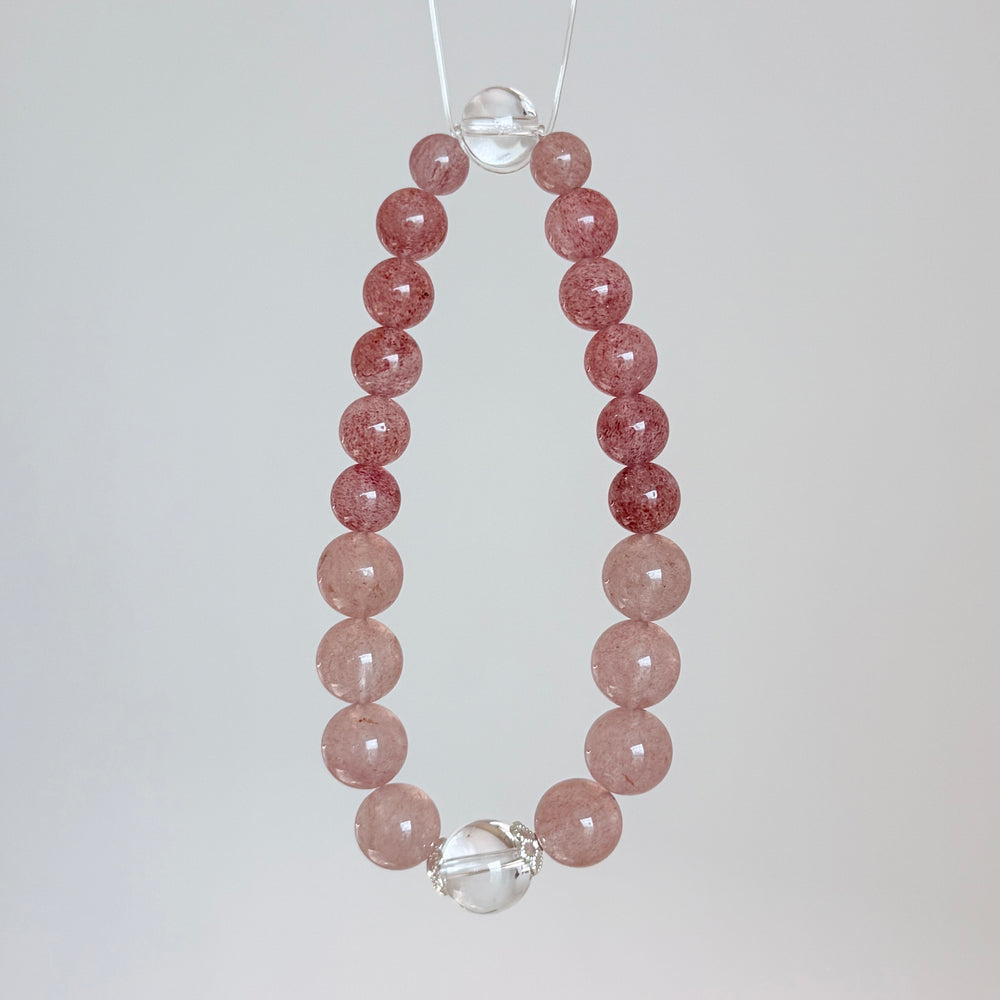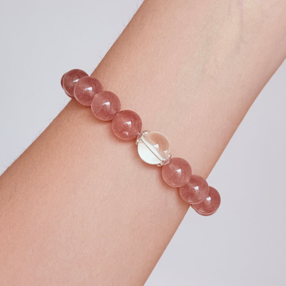 Radiate love and happiness with this Strawberry Quartz and Clear Quartz Bracelet, a stunning handcrafted crystal bracelet that inspires warmth, emotional healing, and self-love.