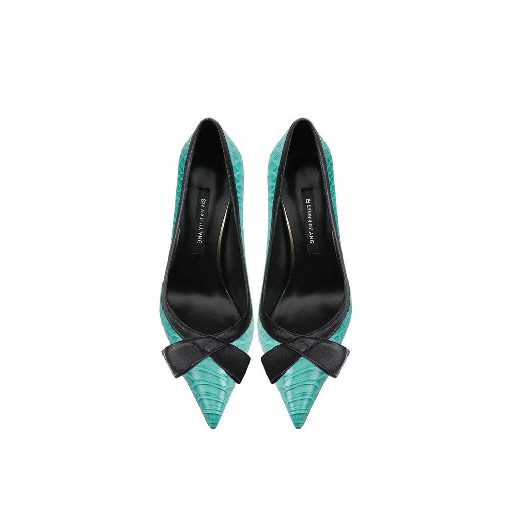 These Stunning bow trends Print Women's Heels are a must-have for any fashion-forward woman. The unique print adds a touch of sophistication to any outfit. while the comfortable heel height provides all-day wearability. Made from high-quality materials. these heels are sure to make a statement and elevate any look.