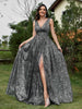 Dazzle in our V-neck Sequins Women's Mermaid Dress! Featuring a flattering V-neckline and shimmering sequins. this dress will make you stand out at any event. Get ready to turn heads and feel confident with this stunning and stylish dress.