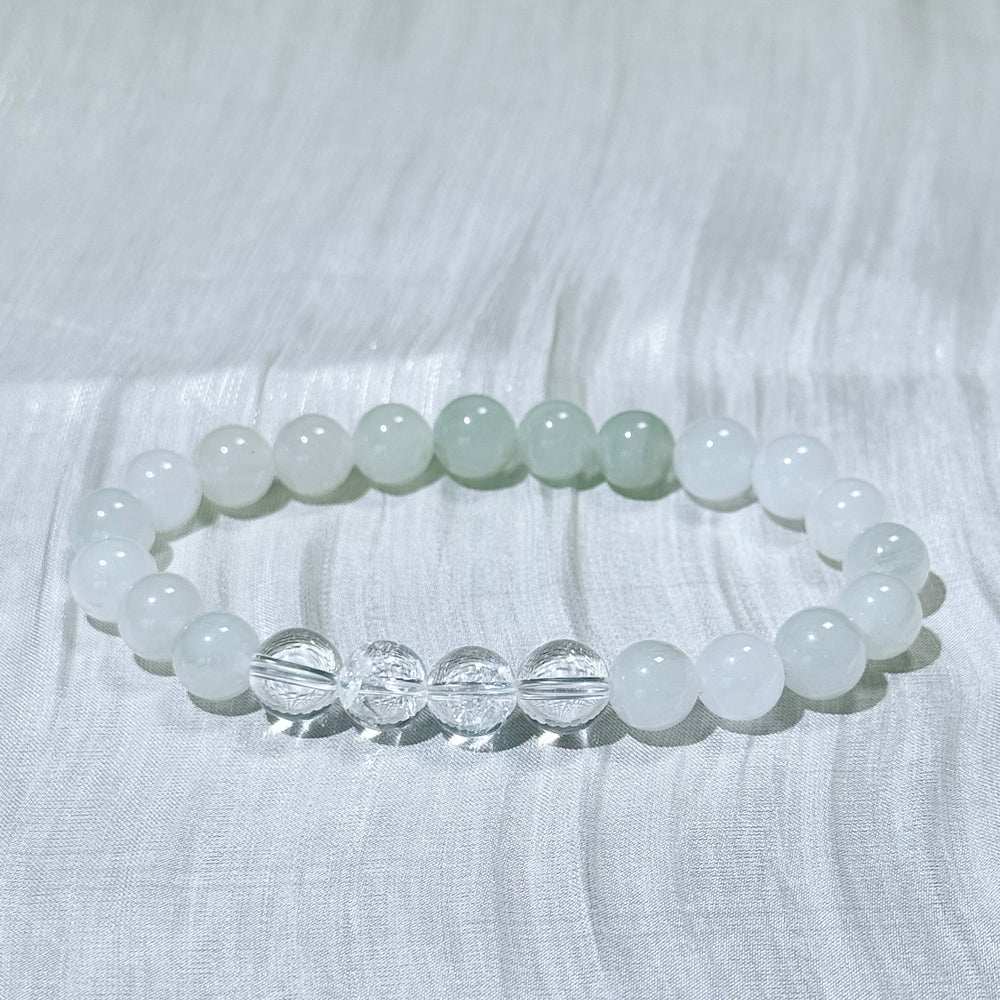 Each bracelet is handcrafted with natural gemstones that reflect gentle tones of milky white and translucent brilliance, symbolizing purity and serenity. Perfect for meditation, mindfulness, or everyday wear to maintain positive vibrations throughout your day.